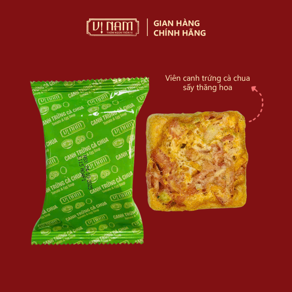 Canh trứng cà chua sấy thăng hoa ăn liền là sản phẩm tiện lợi, giữ nguyên hương vị và dinh dưỡng của món canh trứng cà chua truyền thống bằng công nghệ sấy thăng hoa, được cô đọng thành viên nhỏ; chỉ cần cho nước sôi vào là có bát canh nóng hổi trong 3-4 phút, thích hợp cho người bận rộn, ăn chay (nếu không có thịt), hoặc cần bữa ăn nhanh chóng.